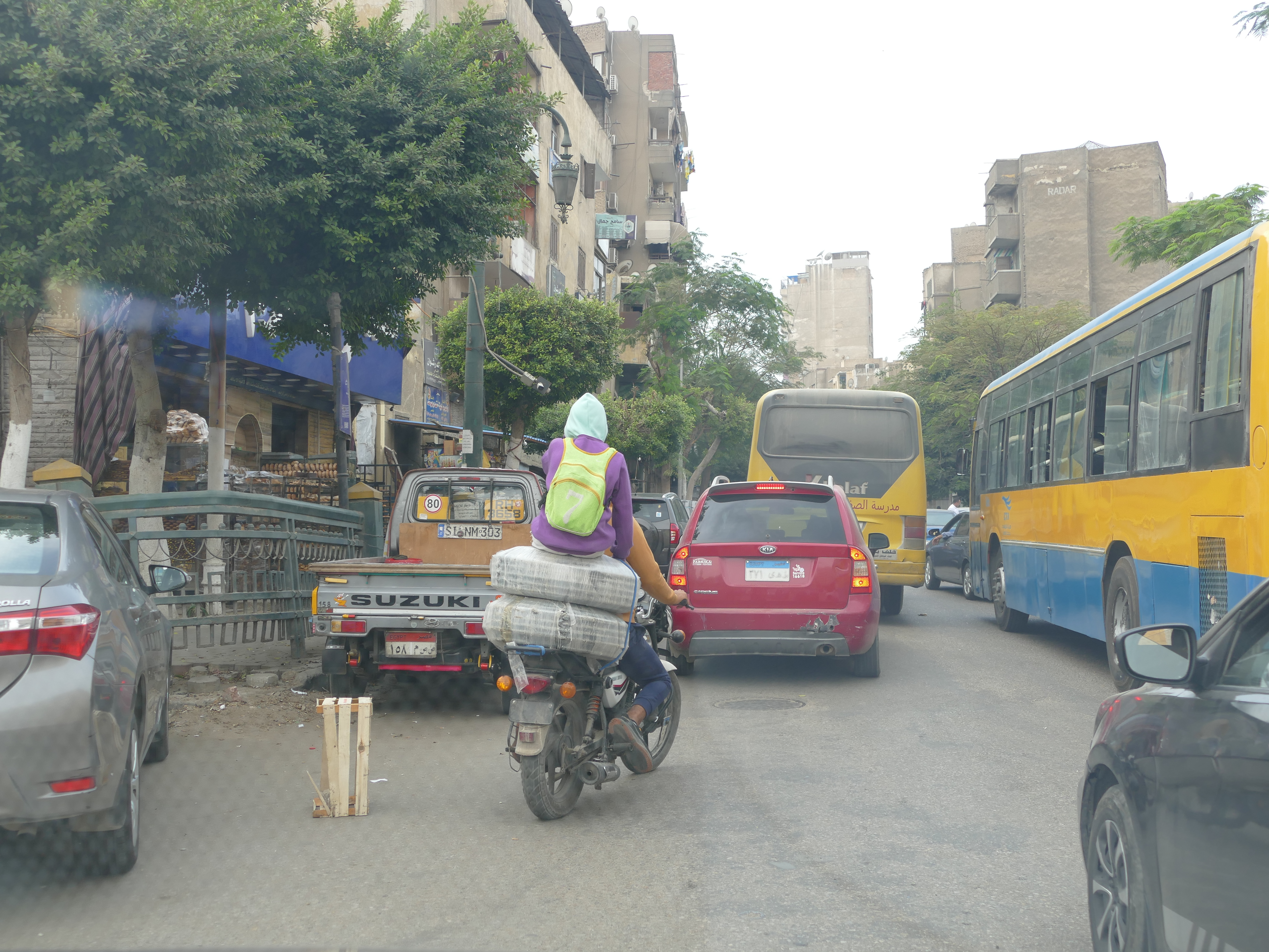 It had gotten embarrassing that altough we have been to 70 or 80 countries we had never been to Egypt. It has been our number 1 priority. We realized we couldn't do the stuff in Egypt we really wanted in this one short trip. We have reserved our further adventures in Egypt after we have been to the goal of 100 counties. We liked Cairo more than than we thought we would. It's pretty much a third world in the Nile delta. Lots of beasts of burden and developing infrastructure. I noticed the buses (metro transport) were old (sometimes very old) Mercedes. They were obviously repaired and repaired and repaired. I don't think I saw a single bus that had functioning lights. The traffic is crazy in Cairo downtown. The style is like in India where the horn is used in a multitude of ways in signalling. "I am here", "hello, careful/watchout" and of course the western standard -- yelling at someone doing something stupid. Our driver was an absolute expert. Smooth and safe, with some scariness thrown in. No traffic lights worked in Cairo.